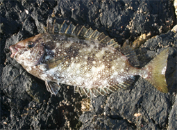 生息域/沿岸の海藻が多い岩礁帯 習性等/海藻に似た保護色で、雑食だが海藻も好む。引きはかな り強く、いわゆる竿たたきといわれる引き味ですぐバリ と分る。各ヒレの棘には毒線があり、刺されるとかなり 痛むので要注意。釣れたら注意して先に鋏で切り落とす。 釣り方/>>フカセ釣り